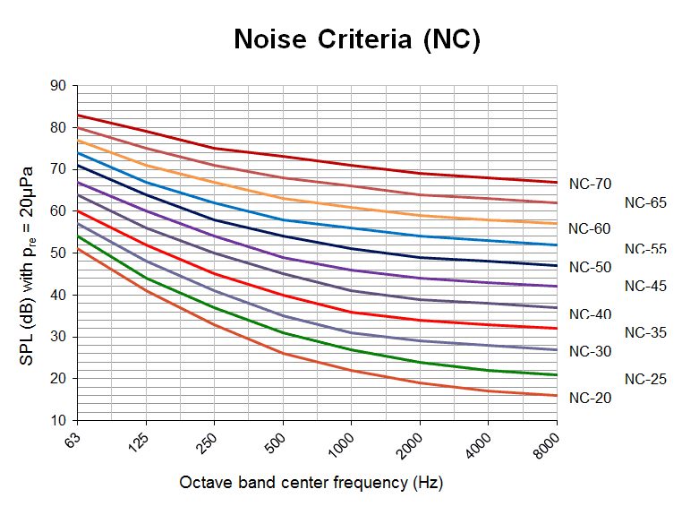 Nomor NC tunggal mewakili satu kurva unik yang membentang di atas rentang frekuensi pusat pita oktaf dari 63 Hz hingga 8.000 Hz.
